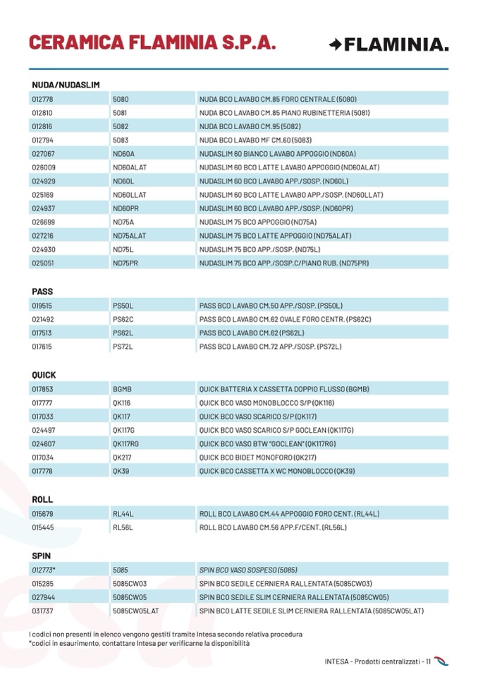 *codici in esaurimento, contattare Intesa per verificarne la disponibilità