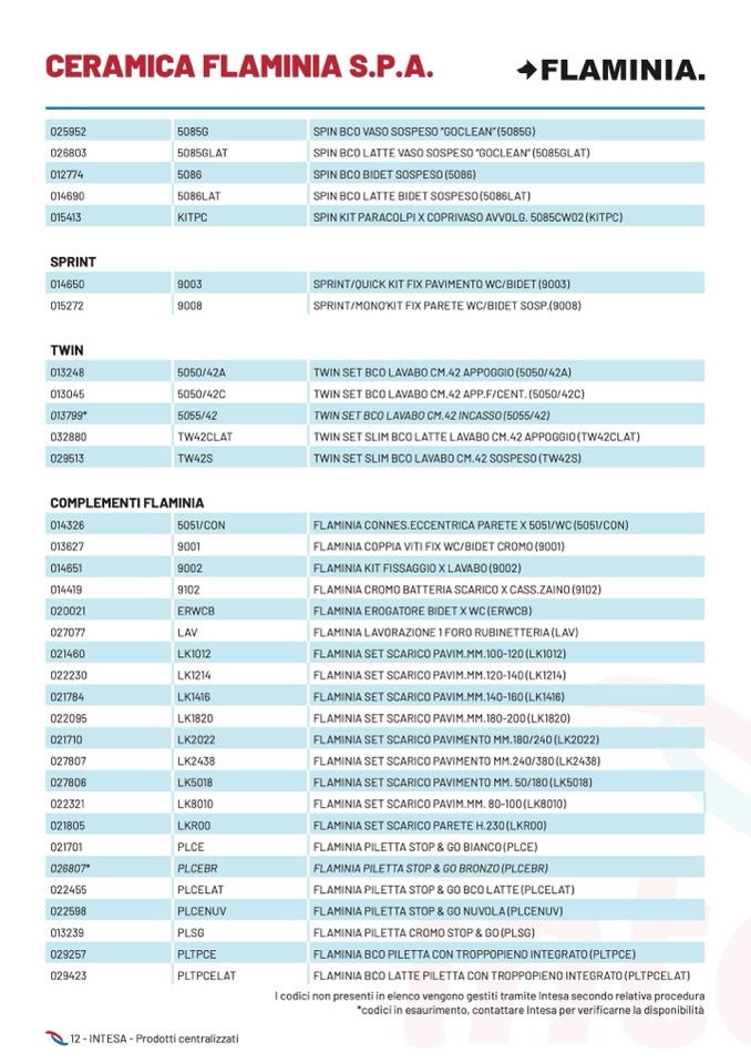 *codici in esaurimento, contattare Intesa per verificarne la disponibilità
