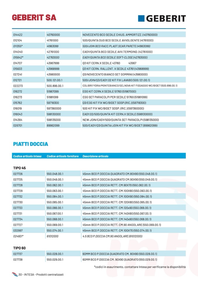 *codici in esaurimento, contattare Intesa per verificarne la disponibilità