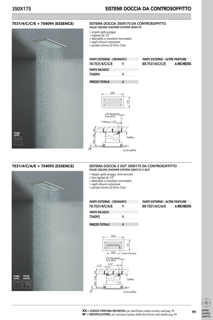 FALSE CEILING SHOWER SYSTEM 350X175 2 OUT