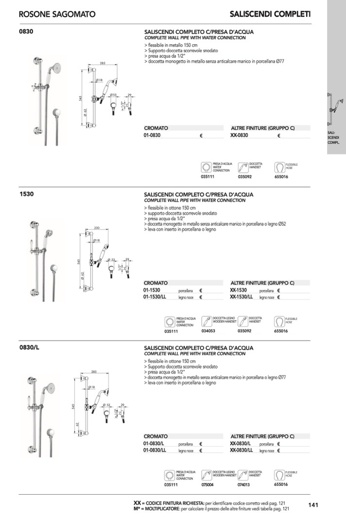 : per calcolare il prezzo delle altre finiture vedi tabella pag. 121