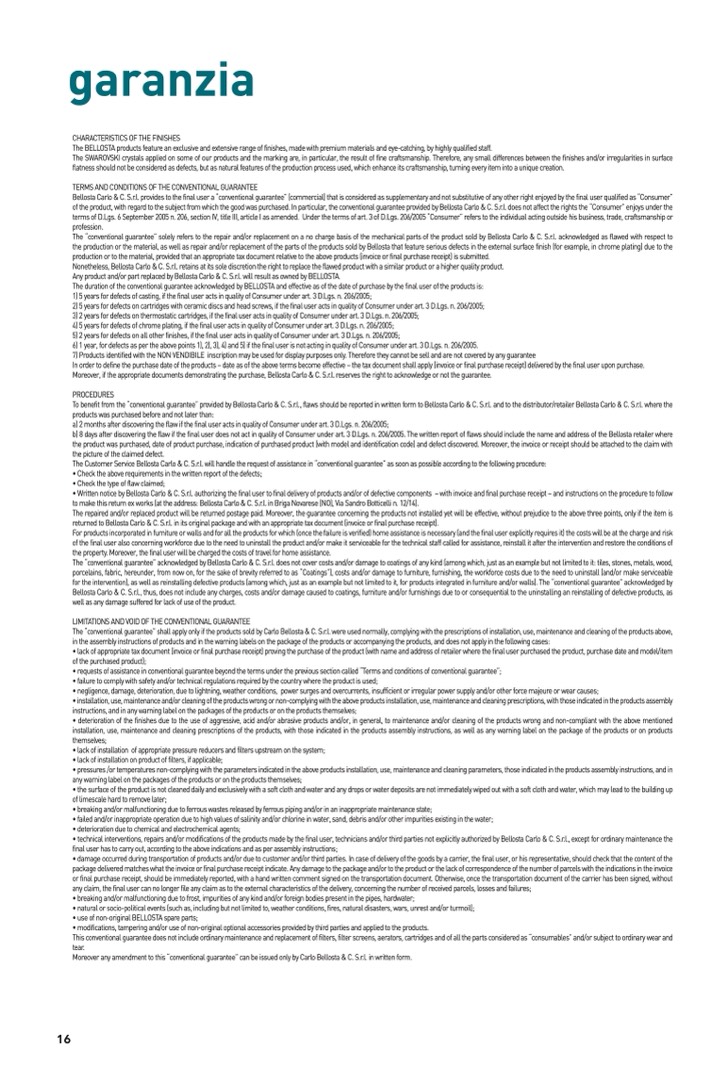 The “conventional guarantee” shall apply only if the products sold by Carlo Bellosta & C. S.r.l. were used normally, complying with the prescriptions of installation, use, maintenance and cleaning of the products above,