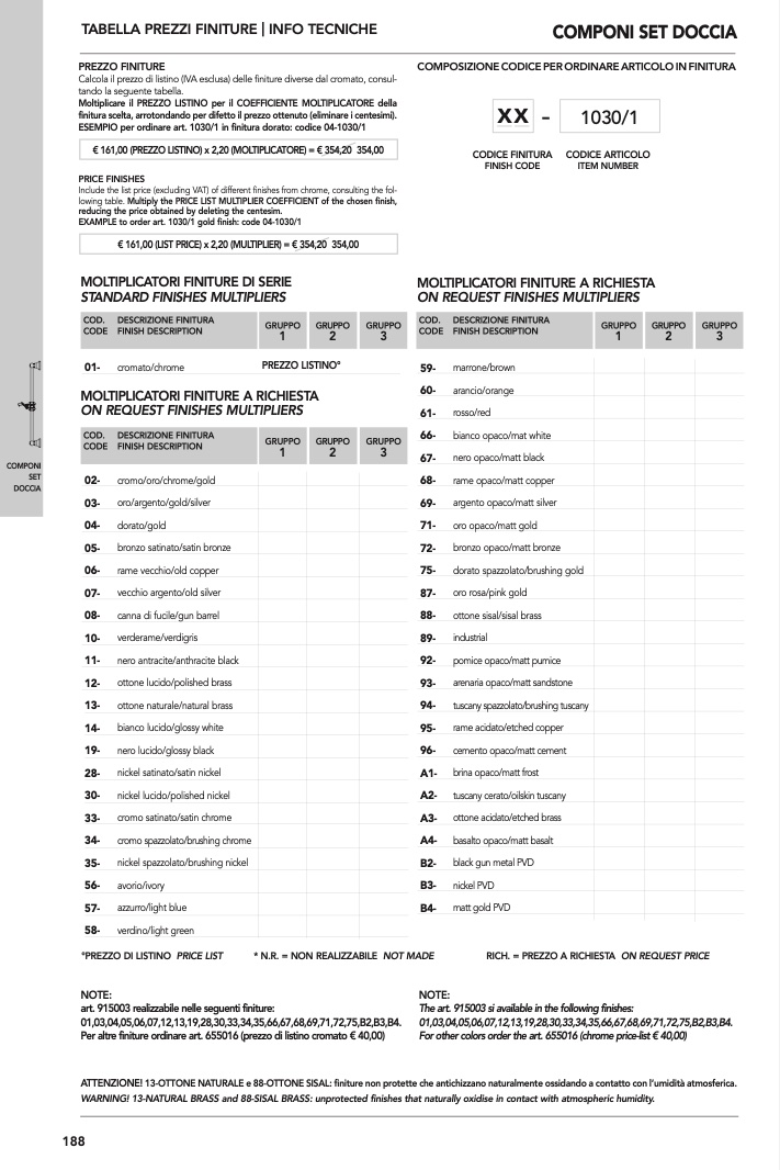 lowing table. Multiply the PRICE LIST MULTIPLIER COEFFICIENT of the chosen finish,