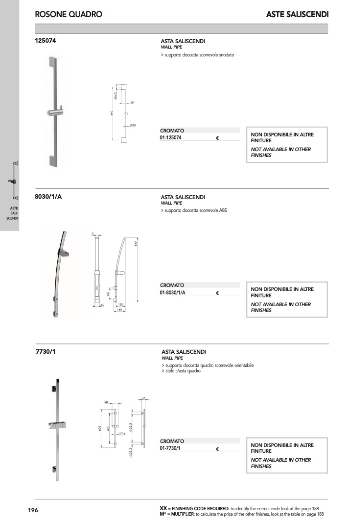 : to calculate the price of the other finishes, look at the table on page 188
