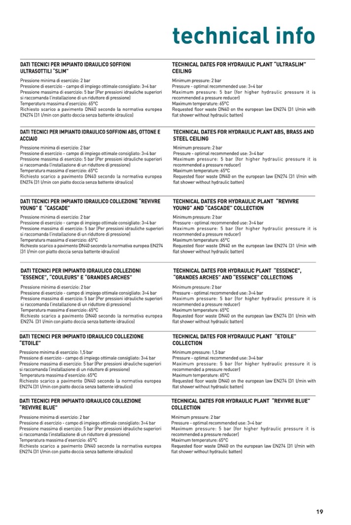 dATI TECnICI pER IMpIAnTO IdRAuLICO COLLEZIOnI