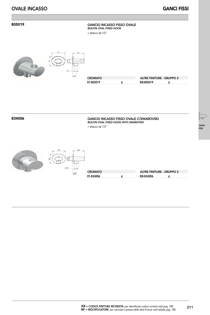 BUILT-IN OVAL FIXED HOOK WITH SWAROVSKI