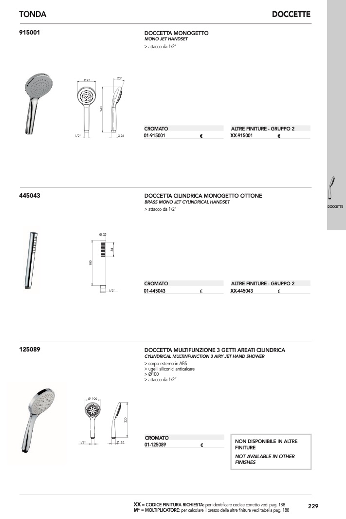 : per calcolare il prezzo delle altre finiture vedi tabella pag. 188