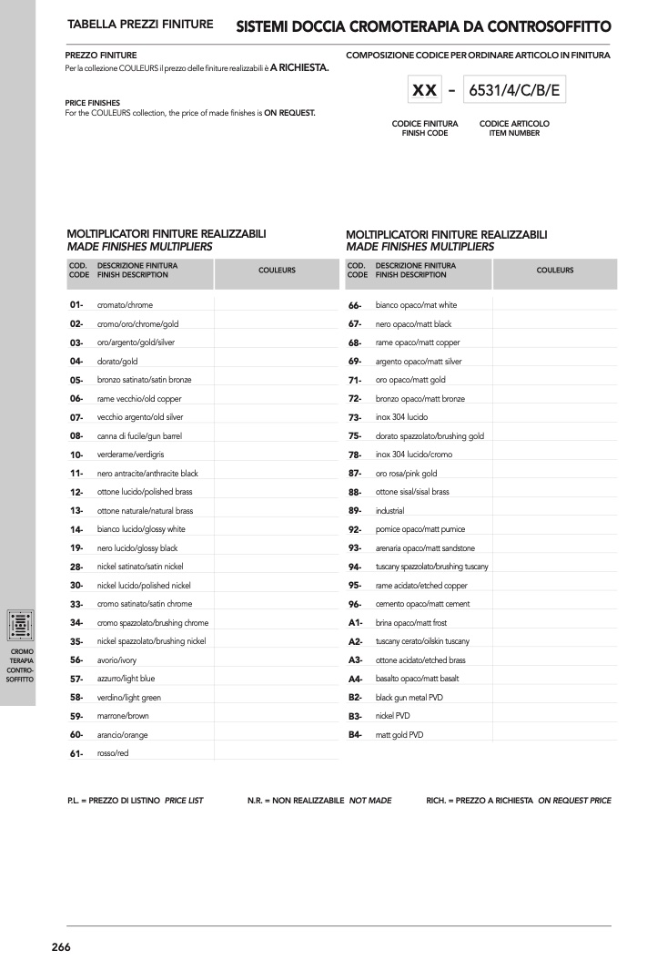 P.L. = PREZZO DI LISTINO PRICE LIST
