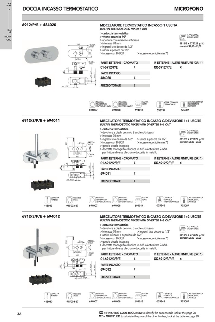BUILT-IN THERMOSTATIC MIXER WITH DIVERTER 1+2 OUT