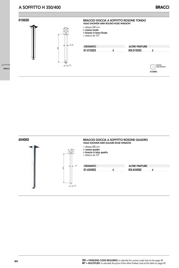 BRACCIO DOCCIA A SOFFITTO ROSONE QUADRO