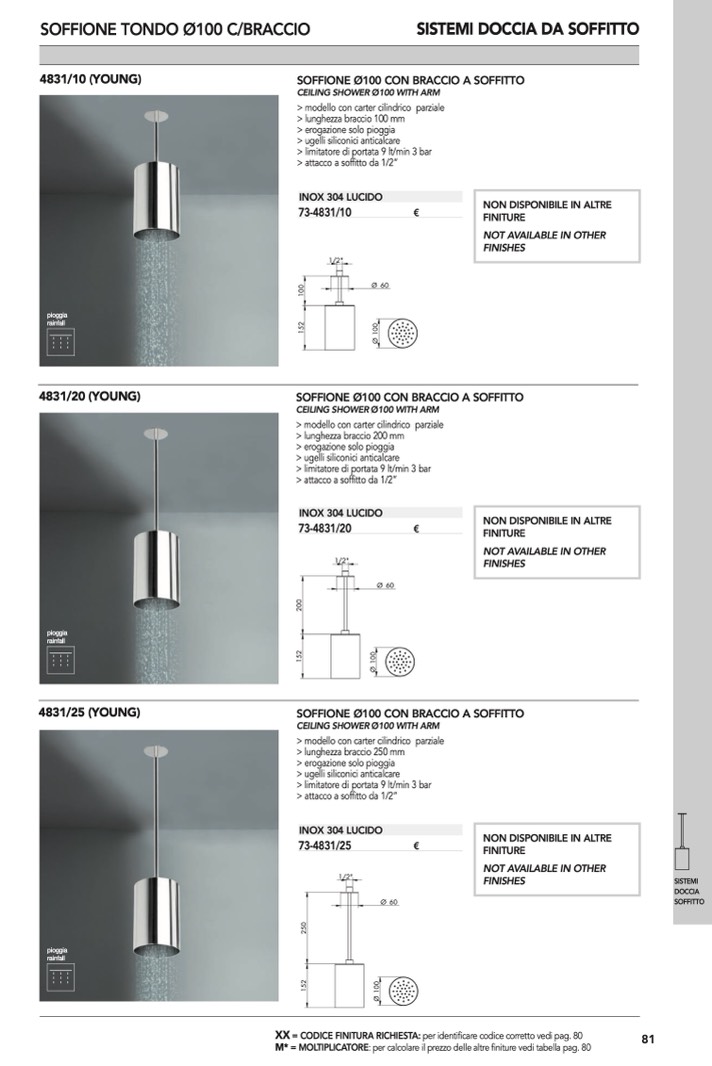 : per calcolare il prezzo delle altre finiture vedi tabella pag. 80