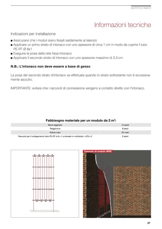 IMPORTANTE: evitare che i raccordi di connessione vengano a contatto diretto con l’intonaco.