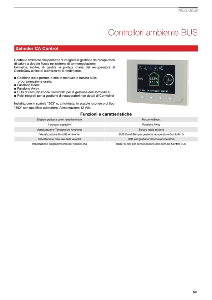 Permette, inoltre, di gestire la portata d’aria del recuperatore al