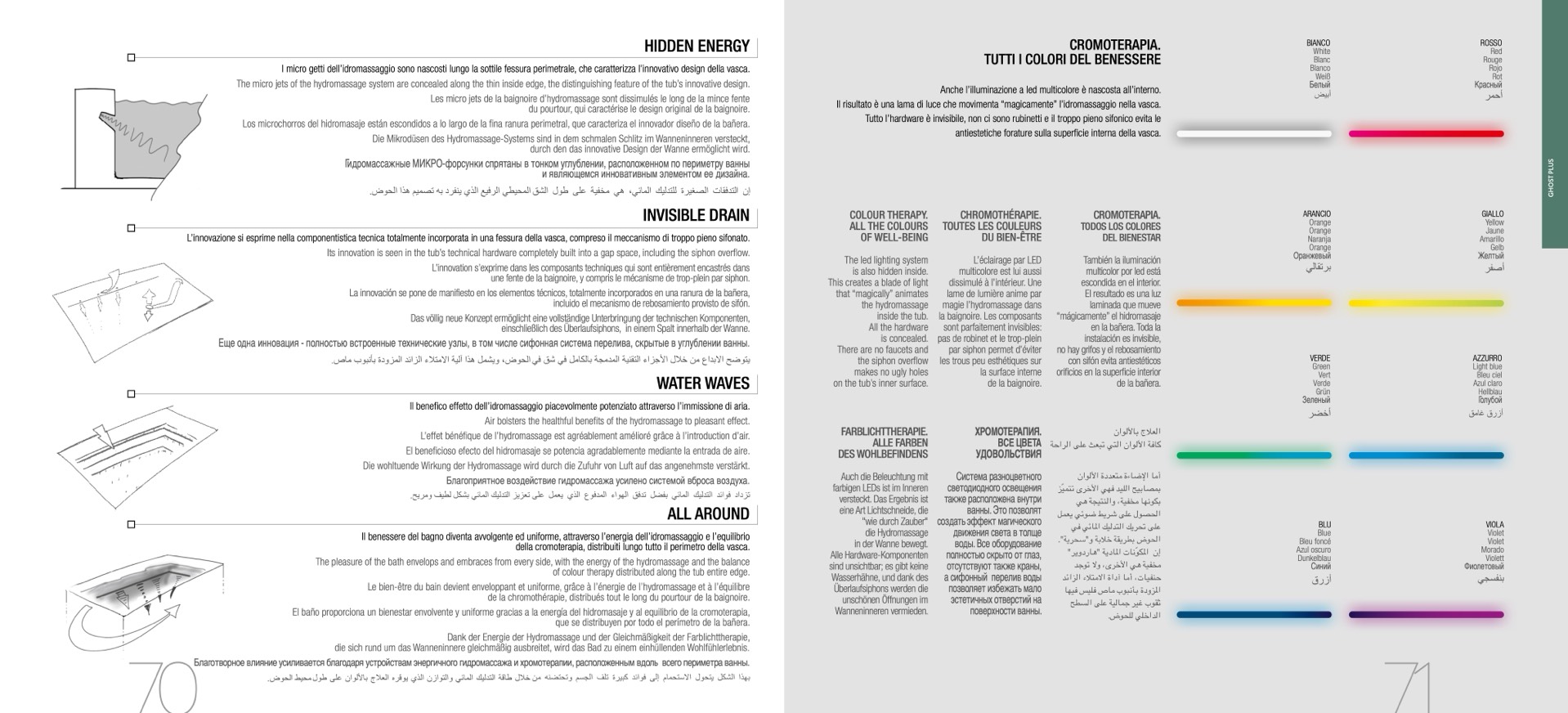 Благотворноевлияниеусиливаетсяблагодаряустройствамэнергичногогидромассажаихромотерапии,расположеннымвдоль всегопериметраванны.