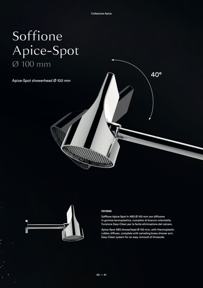 Apice-Spot ABS showerhead Ø 100 mm, with thermoplastic