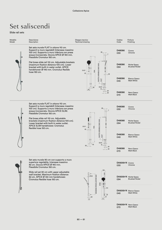 82 cm. Doccia APICE Ø 140 mm.
