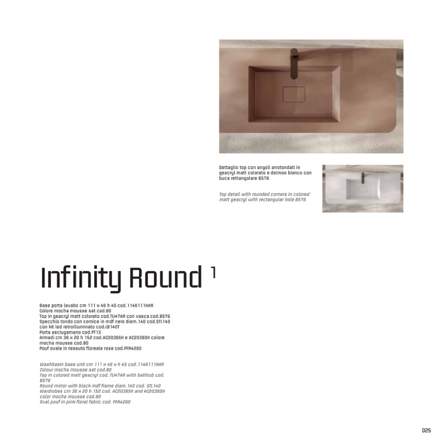 Top in colored matt geacryl cod. TLI47AR with bathtub cod.