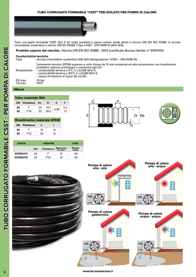 TUBO CORRUGATO FORMABILE “CSST” PRE-ISOLATO PER POMPA DI CALORE