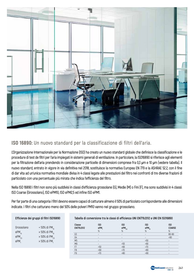 procedure di test de filtri per l’aria impiegati in sistemi generali di ventilazione. In particolare, la ISO16890 si riferisce agli elementi