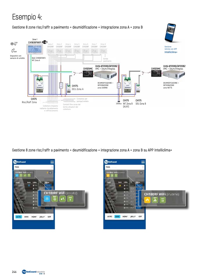 Gestione 8 zone risc/raffr a pavimento + deumidificazione + integrazione zona A + zona B su APP Intelliclima+