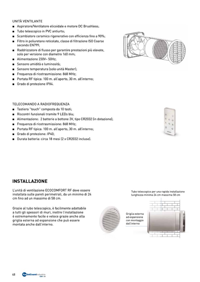 L’unità di ventilazione ECOCOMFORT RF deve essere