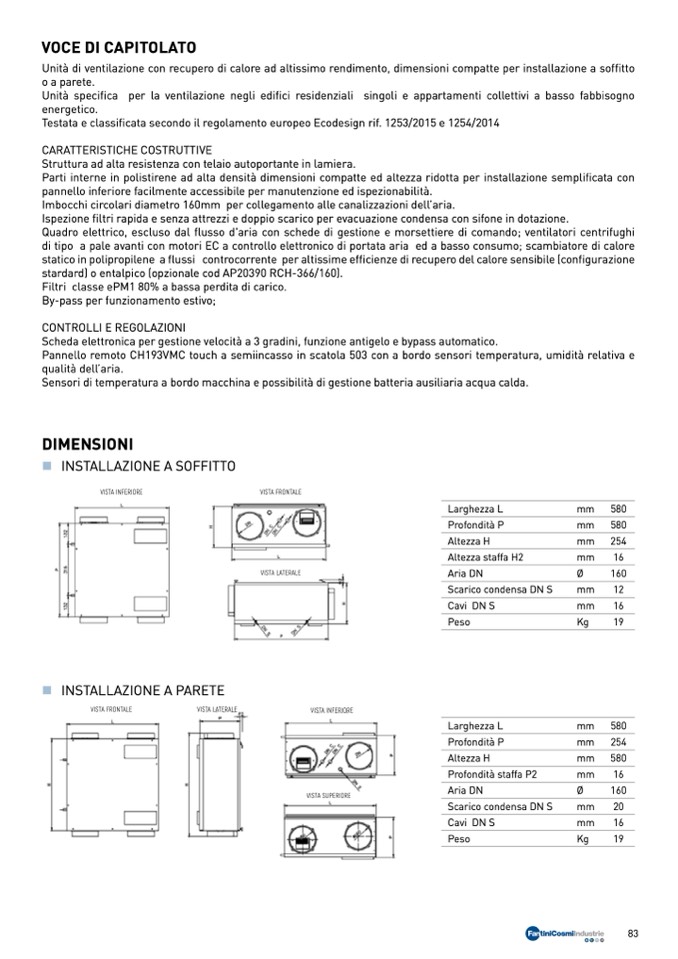 di tipo a pale avanti con motori EC a controllo elettronico di portata aria ed a basso consumo; scambiatore di calore
