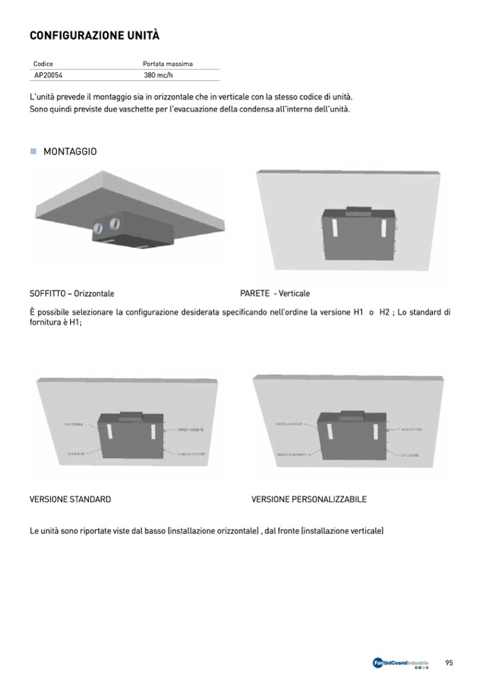 L'unità prevede il montaggio sia in orizzontale che in verticale con la stesso codice di unità.