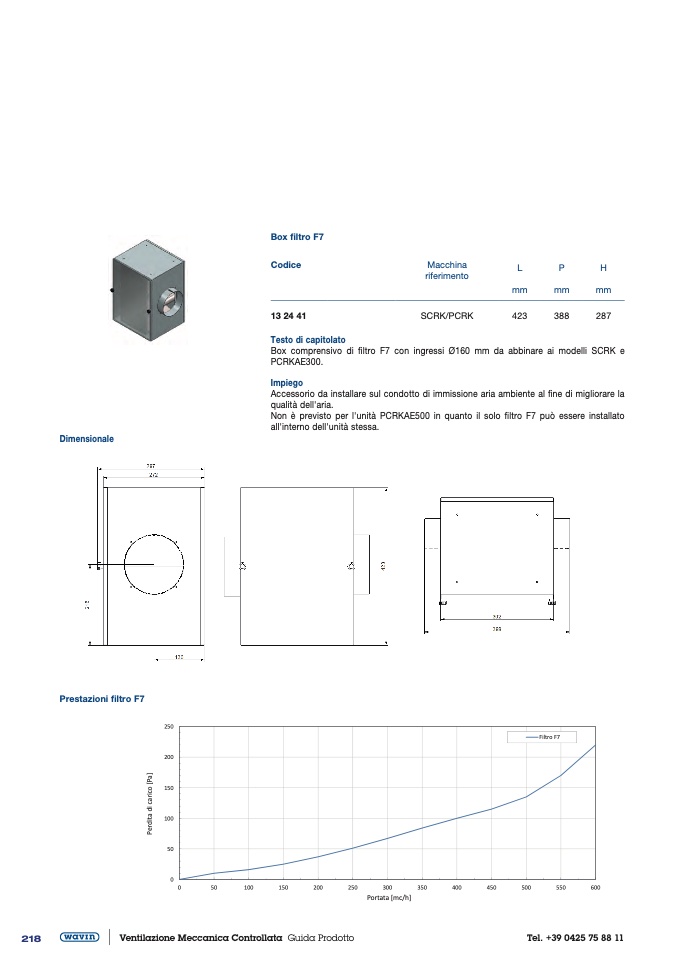 Box comprensivo di filtro F7 con ingressi Ø160 mm da abbinare ai modelli SCRK e