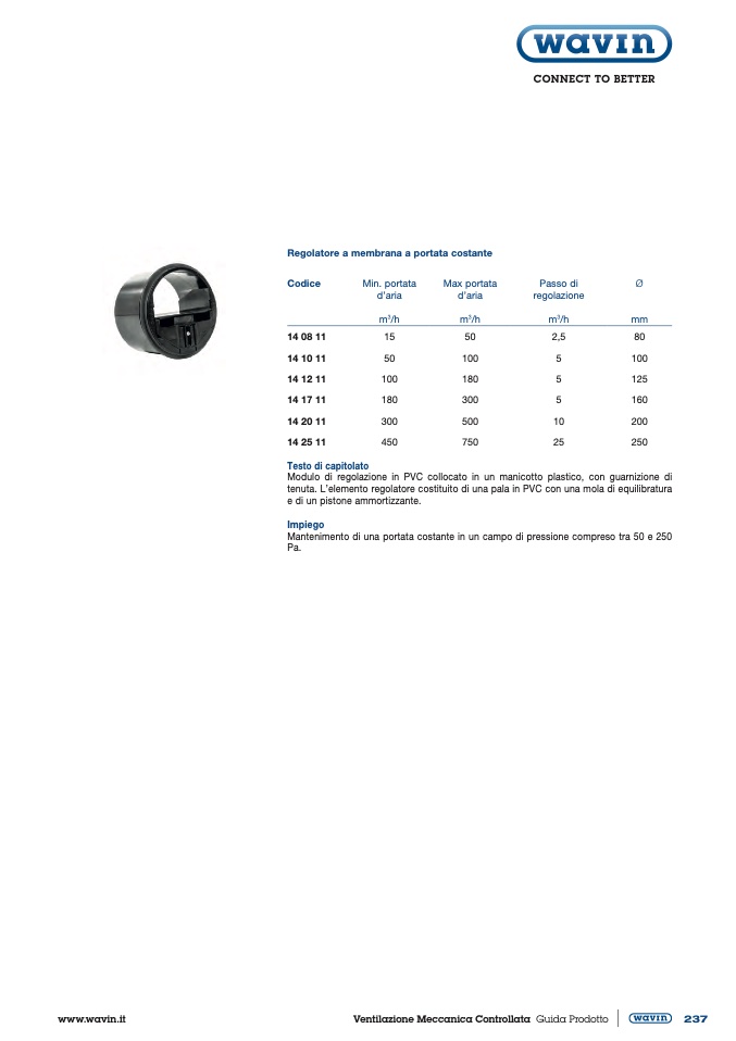 Mantenimento di una portata costante in un campo di pressione compreso tra 50 e 250