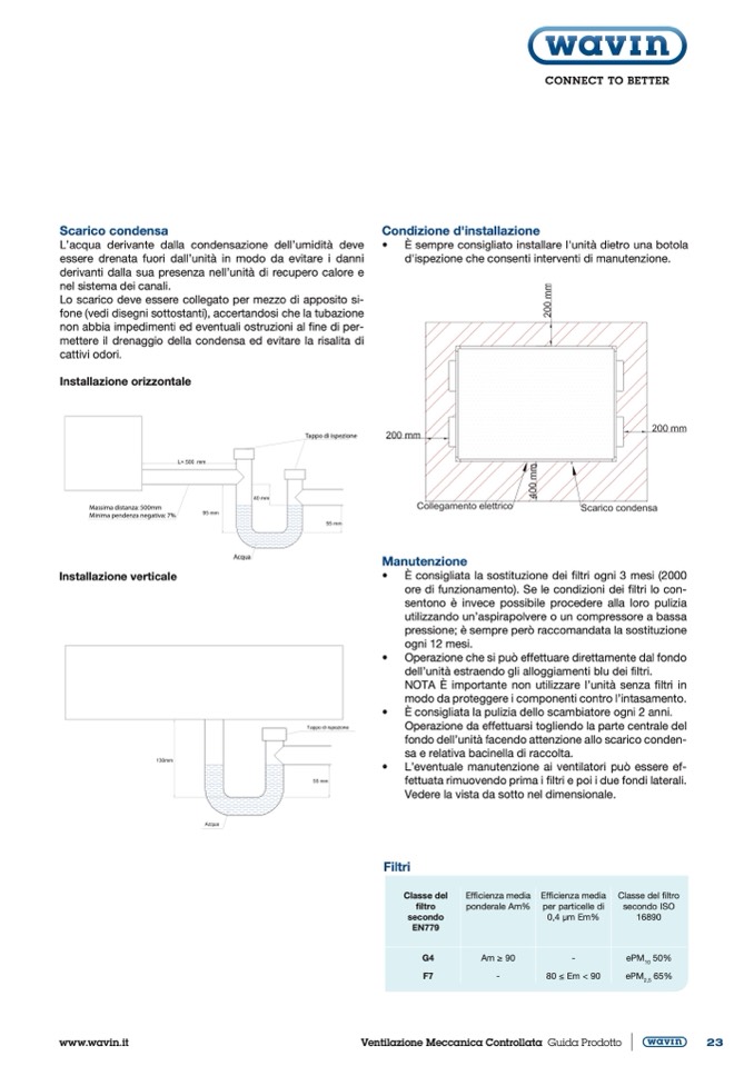 • È consigliata la sostituzione dei filtri ogni 3 mesi (2000