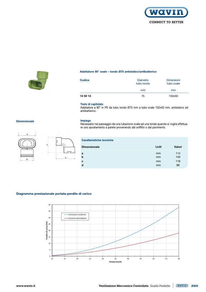 Adattatore 90° ovale – tondo Ø75 antistatico/antibatterico