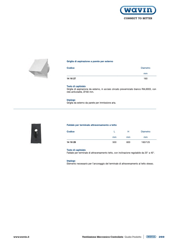 Faldale per terminale di attraversamento tetto, con inclinazione regolabile da 25° a 45°.