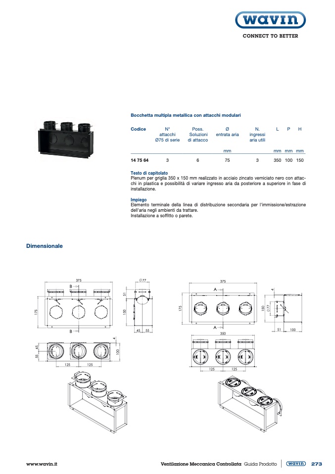 Plenum per griglia 350 x 150 mm realizzato in acciaio zincato verniciato nero con attac-