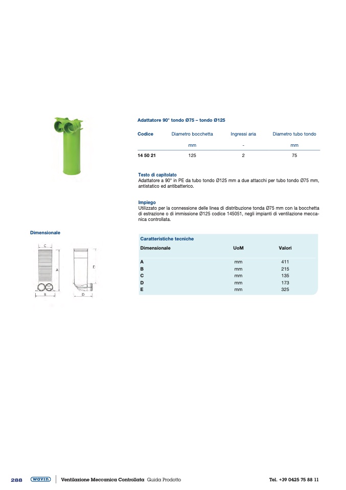 di estrazione o di immissione Ø125 codice 145051, negli impianti di ventilazione mecca-