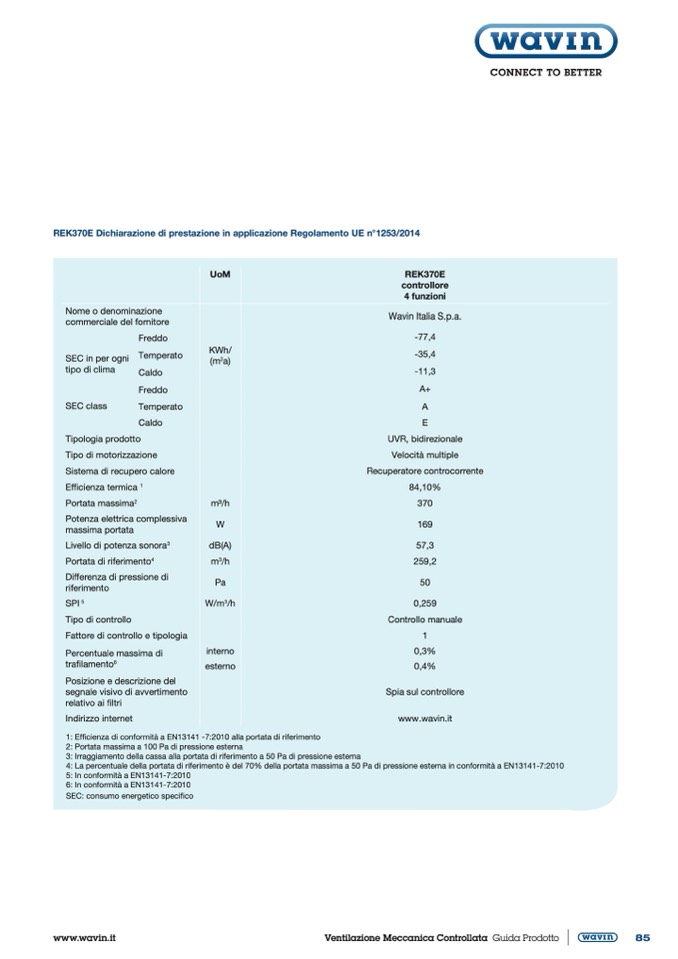 REK370E Dichiarazione di prestazione in applicazione Regolamento UE n°1253/2014