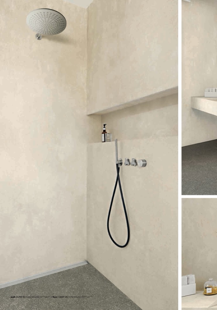 wall: CURE 01 matte 120x240 471/4"x941/2" / floor: CAST 05 matte 60x120 235/8"x471/4"