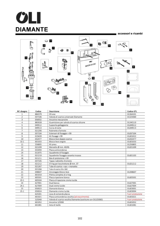 Valvola di scarico vecchia Diamante (sostituire con OL525060)