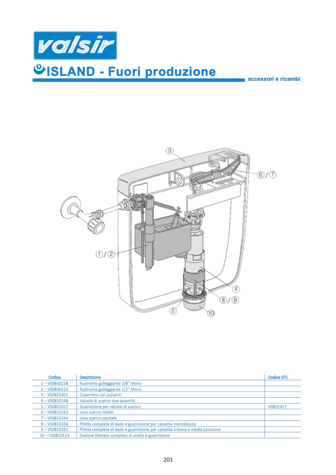 Piletta completa di dado e guarnizione per cassetta a bassa e media posizione