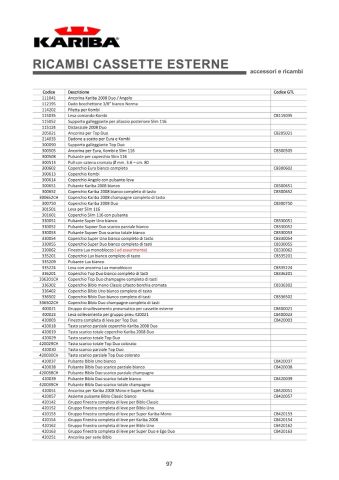 Tasto scarico totale coperchio Kariba 2008 Duo