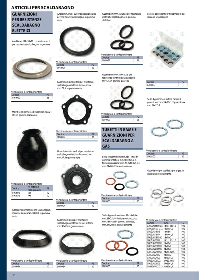 Guarnizioni per scaldabagno a gas, in