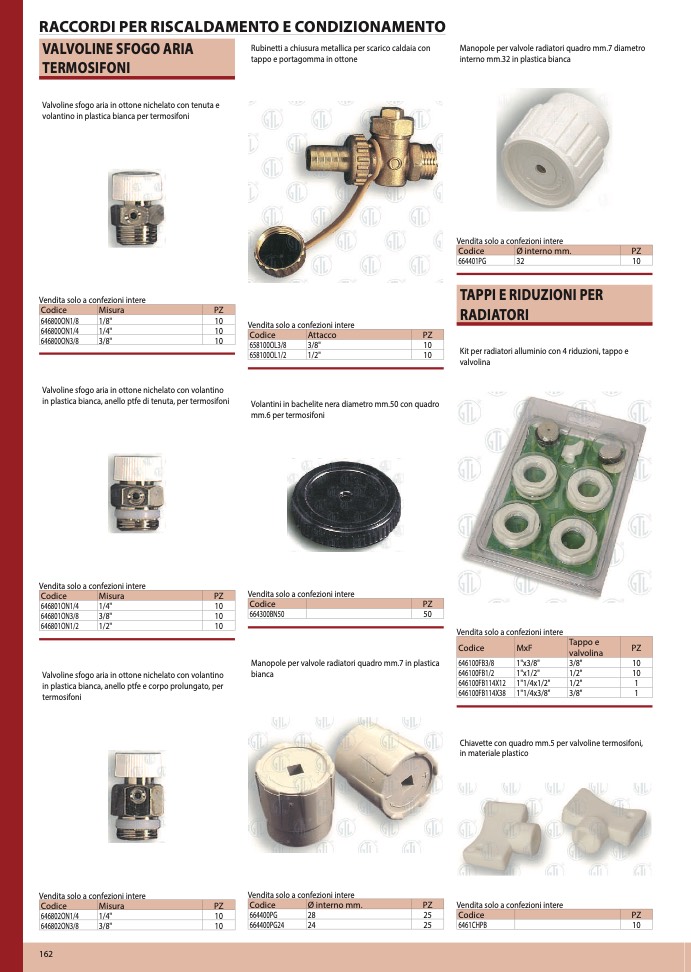 Kit per radiatori alluminio con 4 riduzioni, tappo e