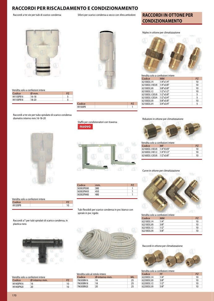 Raccordi a T per tubi spiralati di scarico condensa, in