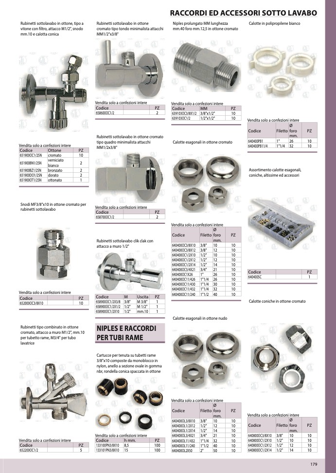 Rubinetti sottolavabo in ottone