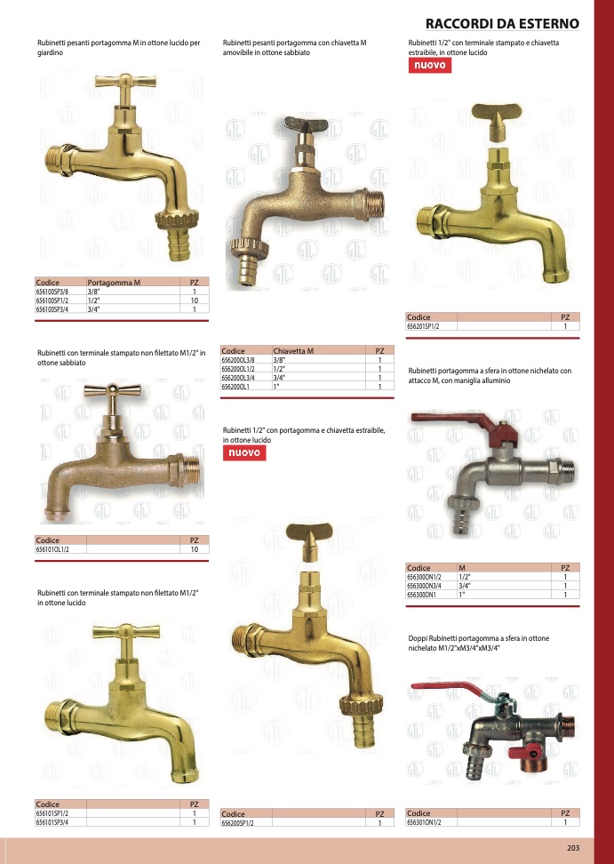 Rubinetti 1/2" con portagomma e chiavetta estraibile,