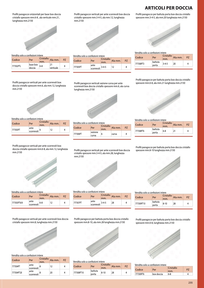 Profili paragocce per battuta porta box doccia cristallo