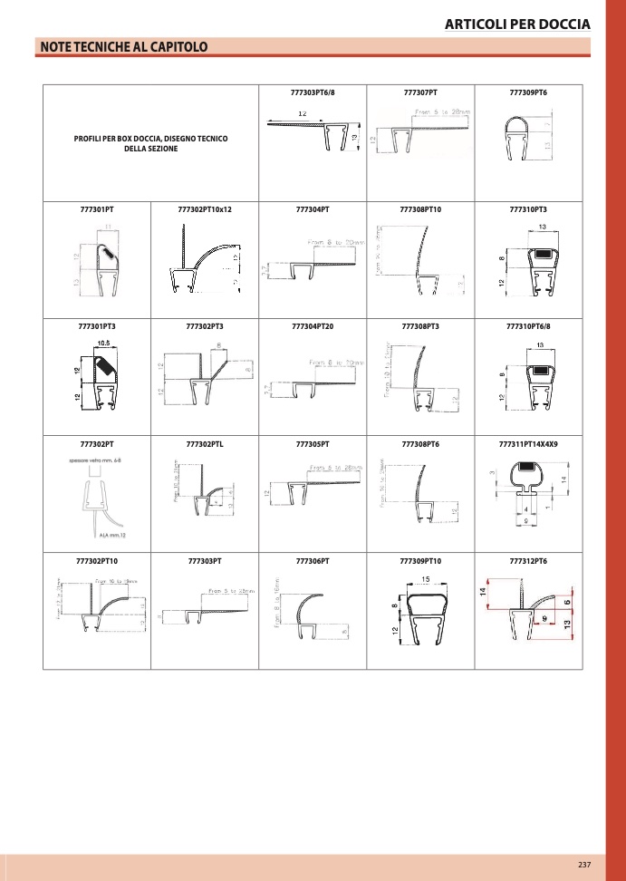 PROFILI PER BOX DOCCIA, DISEGNO TECNICO