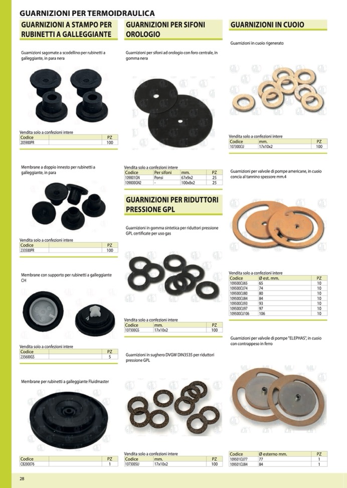 Guarnizioni per valvole di pompe "ELEPHAS", in cuoio