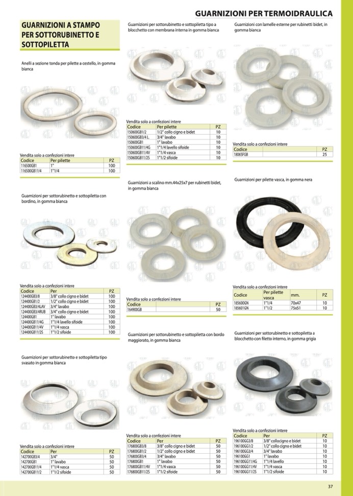 Guarnizioni per sottorubinetto e sottopiletta tipo