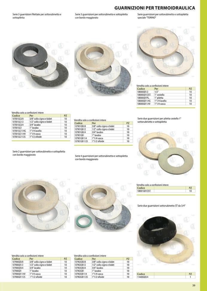 Serie guarnizioni per sottorubinetto e sottopiletta