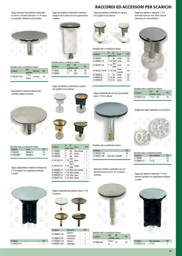 Tappi per pilette a saltarello vasca G